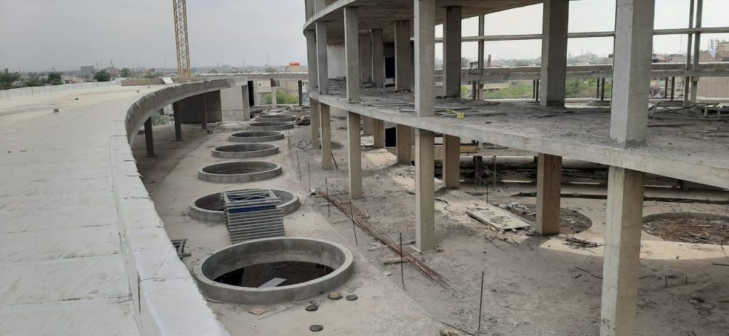 انهاء اعمال التسطيح لكامل بنايات المستشفى والبدء بالتنظيف وتهيئة الموقع للمباشرة بالاعمال الصحية والجدران الداخلية واعمال السكريد والصب الداخلي والاستمرار ان شاء الله بتنفيذ جميع اعمال الانهاءات بنفس الوقت وستكون المرحلة القادمة هي مرحلة استنفار لكوادرنا الهندسية والعمالية لتنفيذ الاعمال وحسب خطة العمل المتفق عليها بالتعاون مع دائرة المهندس المقيم المتكونة من وزارة الصحة ومحافظة بغداد .