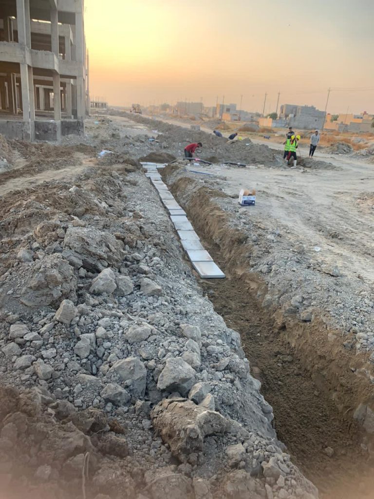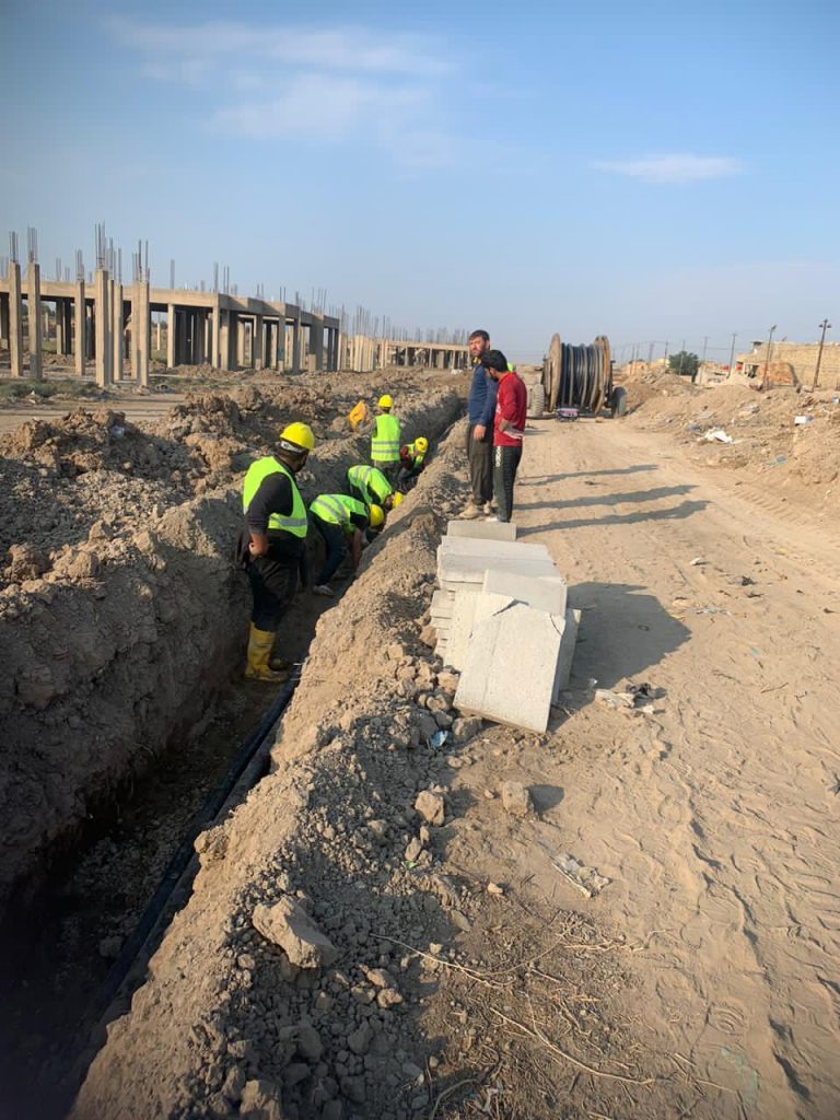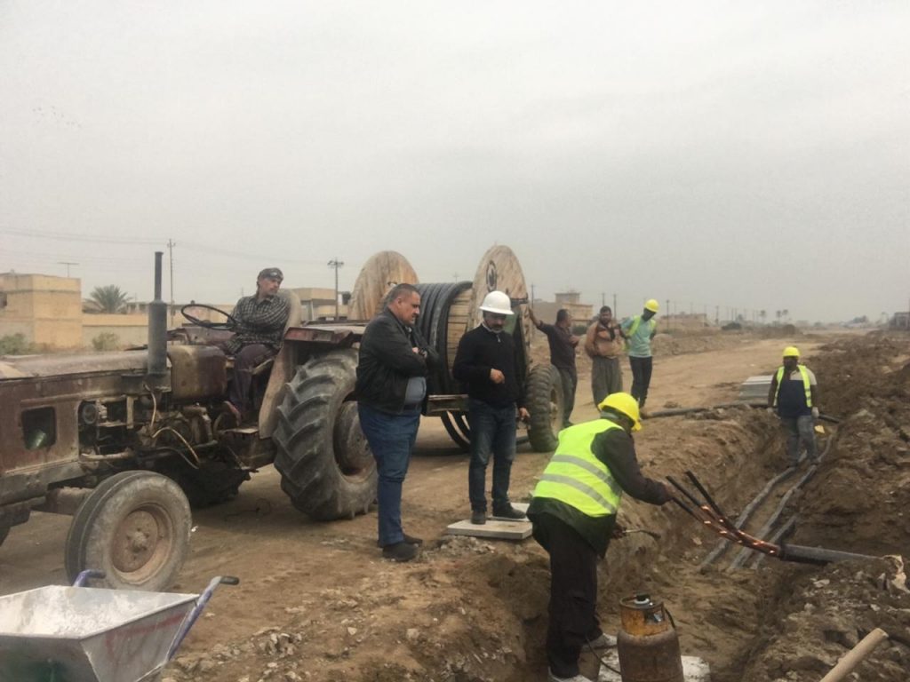 الاستمرار بأعمال مد كيبل الضغط العالي في مشروع المجمع السكني في سبع البور وحسب المواصفات القياسية في طريقة الربط وبإشراف مباشر من دائرة المهندس المقيم لمحافظة بغداد واستشاري الكهرباء المشرف على المشروع
